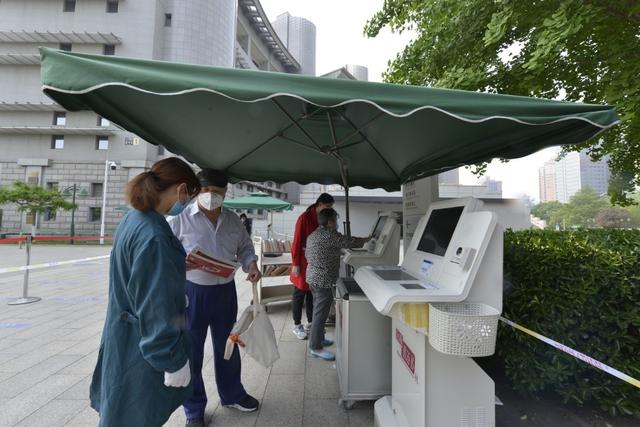 一些读者是来还书的。还书就不需预约进馆了,在首图北门24小时城市街区图书馆旁的自助还书机处,就可以操作办理。为避免读者集中到馆归还文献造成聚集,首图自5月1日起,延长归还文献时间42天。