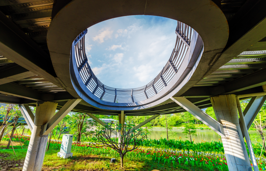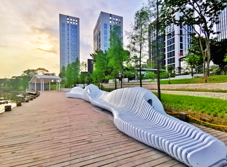 蜿蜒的空中廊道、色彩斑斓的童趣体验区、深蓝慢跑径与乒乓球台、夜色璀璨的蒲公英灯海......初夏时节,走进怡海湖公园,到处是美丽的风景和赏玩的人群。