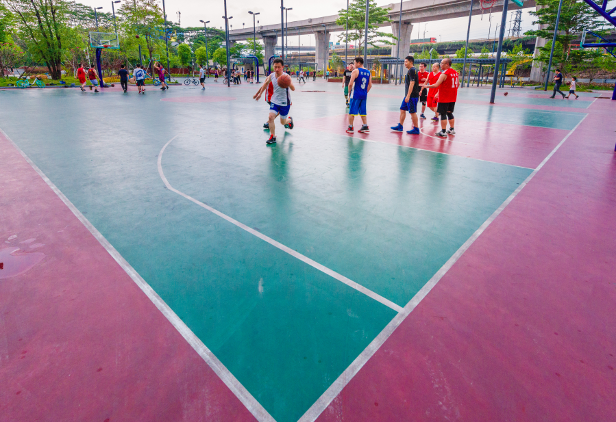 公司楼下就能打球!在天安中心旁,怡海体育公园(一期)已完成改造提升,傍晚时分,不少运动爱好者在公园组队打篮球、跑步健身,活力四射。
