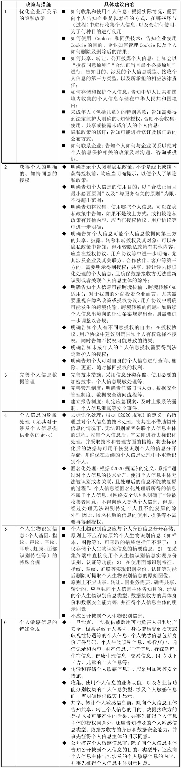 从目前的趋势来看,2020年后,我国对于个人信息保护的相关配套规定、实施细则等,将会逐步加快出台。对于跟个人信息密切相关的AI和TMT企业,结合笔者的实践经验,我们建议企业应当尽早完善个人信息保护的内部政策并采取落实相对应的措施,主要涉及以下几个方面: