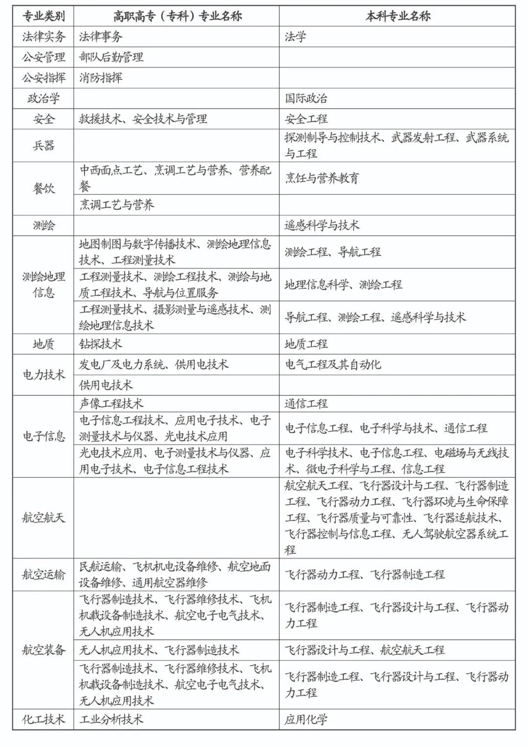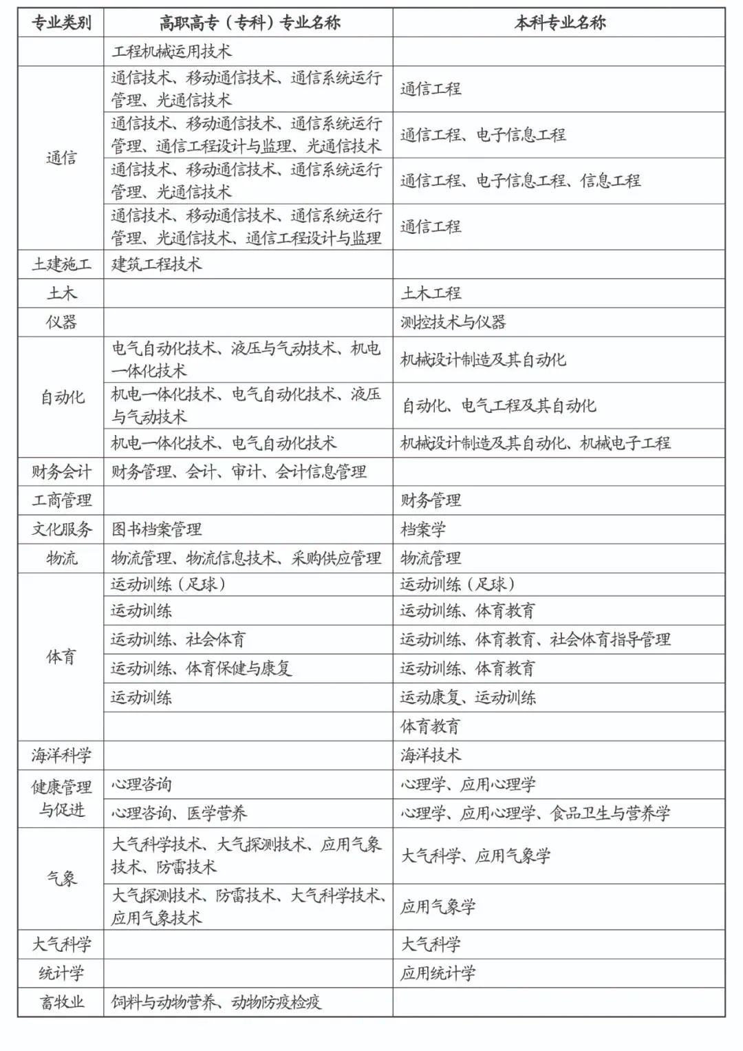 招收士官专业列表