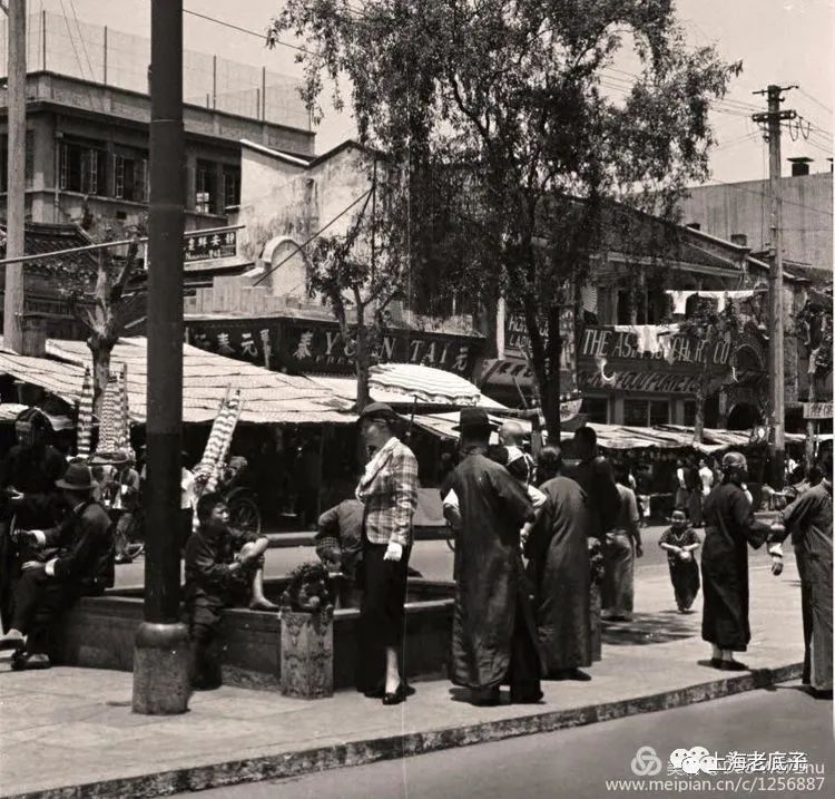 下面一张照片中右侧,电线杆位置,那是南京西路1664弄,泰利巷,旧式里弄,1911年建造,属静安寺地段早期建筑,童年时我们称为静安村。弄内有许多中学同学,云云,豪豪,小浦东,木根,小王都住这条弄堂。弄堂到底,有一条一人走的小道可通到西庙弄,一般知道的人很少,限于小孩和学生而已,大人是不会去走的。泰利巷旁就是亚细亚副食品店,专卖外国火腿,也有中国各种肉类鸡鸭蛋和豆制品。亚细亚副食品店在张爱玲传,第六章上海的公寓生活里曾出现过。描述她买菜的情况。