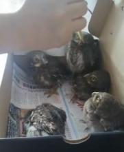 ▲近日,陕西汉中。有市民在家中发现抽油烟机管道有响声,一拍竟然发现5只幼鸟,酷似猫头鹰。民警将其移交野生动物保护站,工作人员介绍它们是斑头鸺鹠,系国家二级保护动物,将其喂大后会放生。