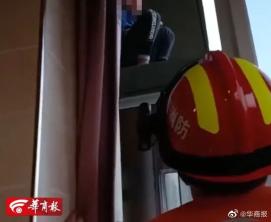 ▲5月17日,陕西省彬州市的一户居民家里,一名10岁的男孩因为手机问题与家人发生矛盾,负气爬上19层楼的窗台,要跳楼轻生。消防员到场后一方面配合男孩家人沟通劝阻,另一方面立即穿戴好个人防护装备,从男孩栖身的窗台上方21层坠绳而下开展救援,男孩见到消防员也并未反抗,而是十分配合地接受。所幸,男孩被成功救下。