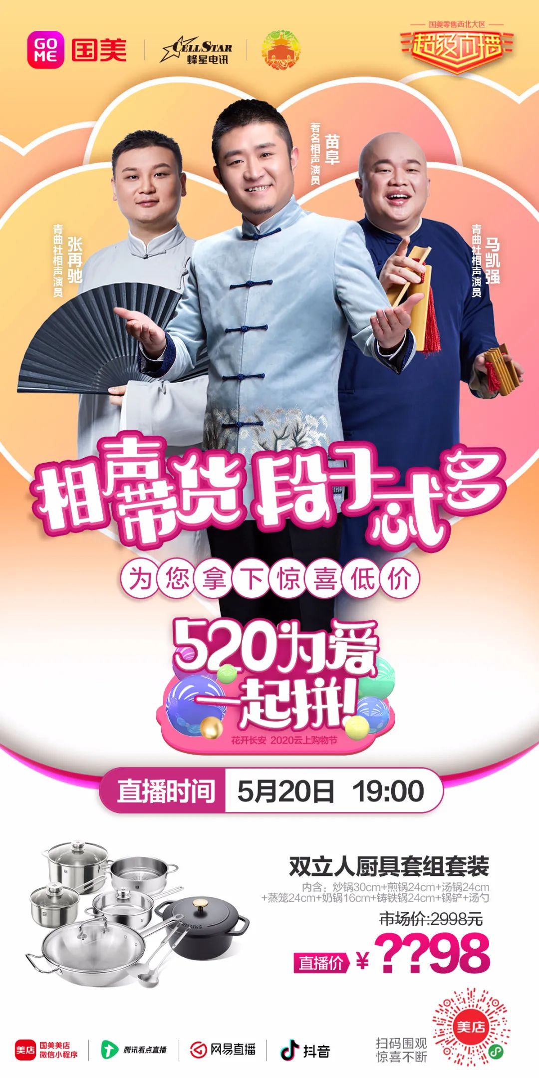据了解,“5.20为爱一起拼”超级直播活动是由国美陕西牵头,联动国美兰州、西宁、新疆分公司,从提振经济、助力扶贫、提升人民生活品质三方面出发,真正达成企业、消费者、经济的三方共赢局面。为了改变传统直播的“硬带货”方式,给观众全新的沉浸式购物体验,国美特别邀请到著名相声演员苗阜现场助阵,当天,苗阜将会来到国美卖场,为大家现场演绎一场别开生面、极具特色的相声节目。