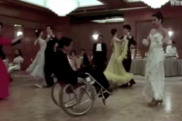 《英雄本色》上映第5年,周润发与张国荣、吴宇森再聚首拍摄《纵横四海》,片中他与钟楚红那段轮椅探戈,至今都是港片中的高光片段。
