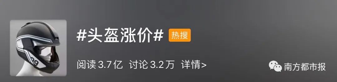 而且,#头盔涨价#还上了热搜。