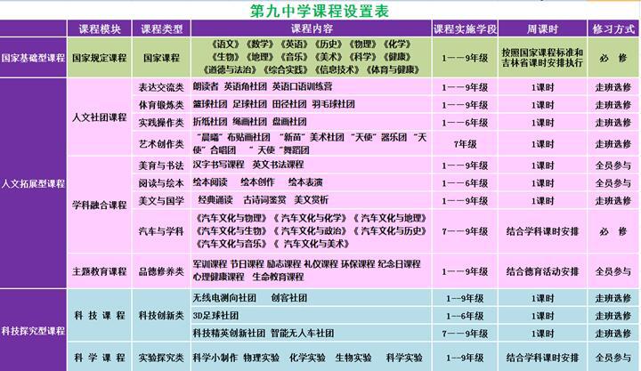 绿色教育,和谐育人,汽开区第九中学是长春市首批国家级绿色学校、中国教育科学研究院实验学校、全国科技创新十佳学校、北京大学深圳研究院STEM教育教学实验学校、吉林省教育系统先进集体、长春市首批“AAA”学校、长春市首批三星级特色校、长春市教师专业发展示范校。