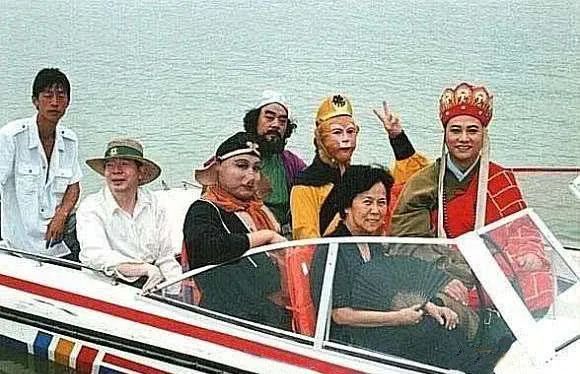 剧组当时没钱,每顿饭的标准是5毛钱。到广州这些改革开放前沿地区拍戏,一碗饺子2块5,才6个,男演员根本吃不饱,导演杨洁(照片里黑衣拿黑扇的那位)自己掏钱给工作人员吃饭。
