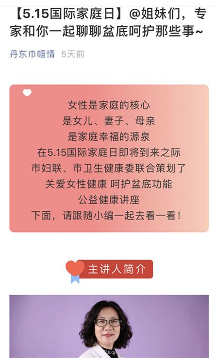 邀请市中心医院主任医师阮英杰以《关爱女性健康、呵护盆地功能》为题开展女性健康讲座,引导市民关注女性健康,建设幸福家庭;邀请教育专家张铁刚以《激发内动力,培养优秀孩子》为题开展家庭教育直播,引导广大家庭帮助孩子“扣好人生第一例扣子”。