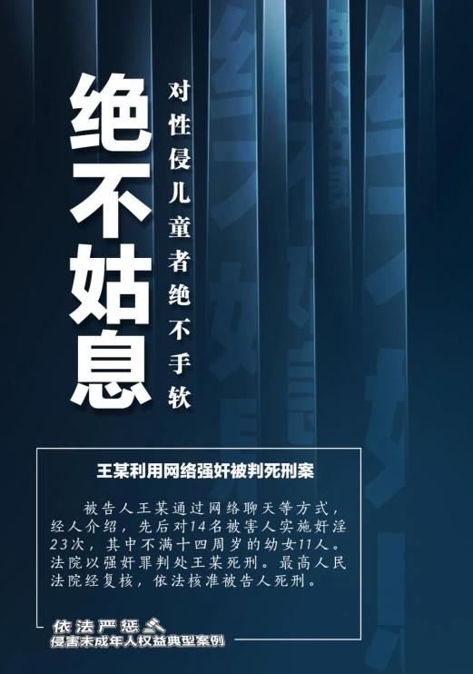 18日,最高人民法院发布7件依法严惩侵害未成年人权益典型案例。最高法表示,对侵害儿童权益的案件中罪行严重、情节恶劣者,该重判坚决依法重判,该判处死刑的坚决依法判处死刑。