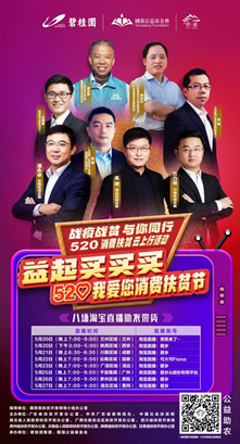 据了解,从5月19日开始,碧桂园集团、国强公益基金会联合社会扶贫共同体打造“益起买买买——520我爱您消费扶贫节”,将连续举办10场直播活动。除了“翀锋组合”、薇娅两场扶贫直播,5月20日至27日期间,碧桂园、国强公益基金会还将联合广东、甘肃、湖北、陕西、四川、贵州、云南等多省、区的“带货达人”,推出消费扶贫直播带货系列活动,期间媒体大V、碧桂园八地区域总裁、消费扶贫代言人等,将通过直播推荐各地扶贫好物。
