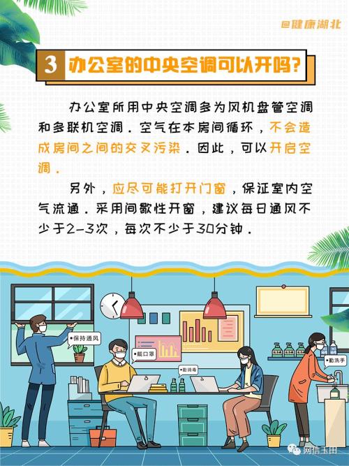 ③开空调时暂时不要关闭门窗,让空气流动一段时间以后,再关闭门窗。使用中央空调的时候应该提高新风率,并保持一定的空气流通和自然通风。