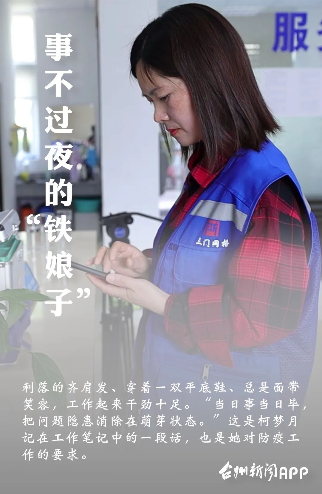 2月,正是疫情防控最关键的时期。有一天晚上8点,加班回家的柯梦月正准备给上网课的儿子煮宵夜,却被突来起来的电话铃声打破了计划。那是一个防控指令电话:金茂大厦有一对夫妇从武汉转机返回三门,虽未在武汉停留,但按照要求,柯梦月需要马上联系上他们,并告知夫妇俩进行居家隔离观察。