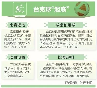 5月19日,省旅文厅说,经过国家体育总局批准,海南将组建台克球国家队,参加2020年第六届亚洲沙滩运动会(以下简称三亚亚沙会)。