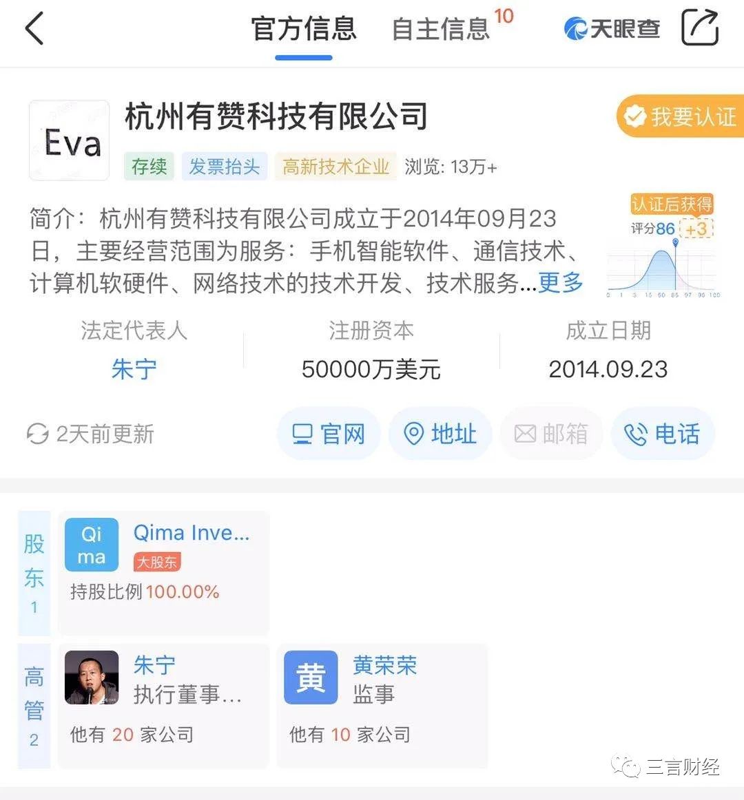 据天眼查数据显示,杭州有赞科技有限公司成立于2014年09月,法定代表人朱宁,注册资本50000万美元。