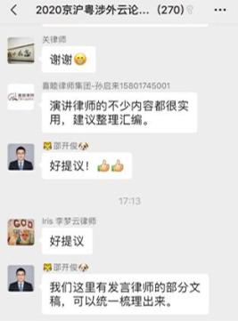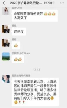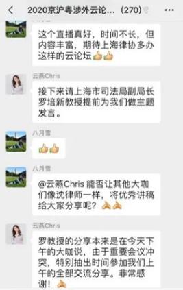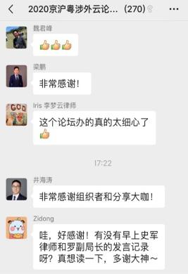 此次线上跨省市涉外云论坛突破以往传统会议形式,三家协会的律师群策群力,取得了良好的反响。来自不同地区的法律同仁们通过此次交流,分享各自法律成果,气氛十分活跃,会议期间讨论接连不断,与会者有对某一问题所作判断结论的不谋而合,也会有对问题持不同意见者的各抒己见,这都将有助于涉外法律服务行业人才的培养和涉外法律服务质量提升。