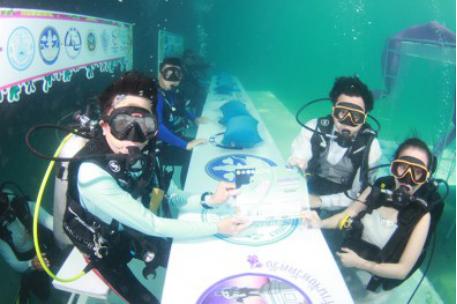 什么?沙滩婚礼你要去马尔代夫?在这里举办婚礼的新人朋友们都是在水下举办婚礼的,虽说不是真正的结婚,但也是一次促进感情的机会。还有的朋友真的从这回去后就走进婚姻殿堂了。