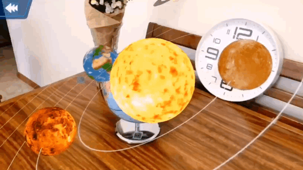 像平时孩子上地理课,老师会讲到星球公转与自转的问题,如果能配合这个AR太阳系,一目了然,一定会让孩子更加影响深刻。