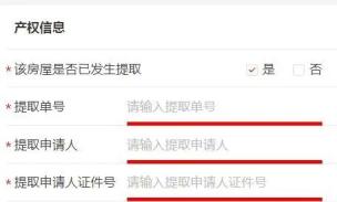 选择“该房屋是否已发生提取”,若选择“是”则录入该套房的申请单信息:提取单编号、提取申请人(姓名)、提取申请人证件号,录入并校验通过后,自动关联该提取单并带入已有的房屋信息;