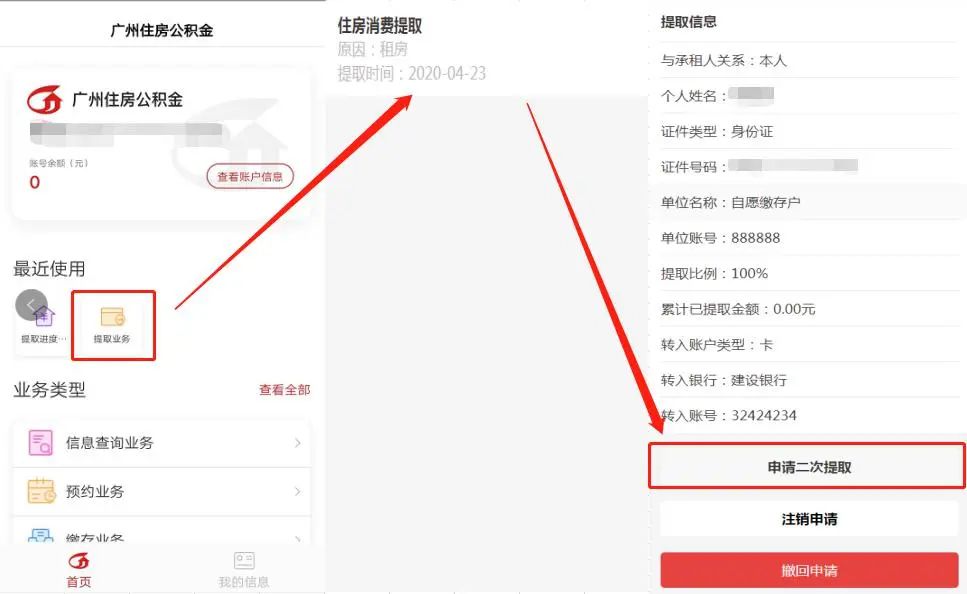 主贷款人可以搜索关注“广州住房公积金管理中心”微信公众号,在菜单栏点击“查询办理”或者打开手机APP进入首页点击登录→录入登录信息后登录账户后,选择“提取业务”,选择需要二次提取的提取单,再拉到最下面点击“申请二次提取”。