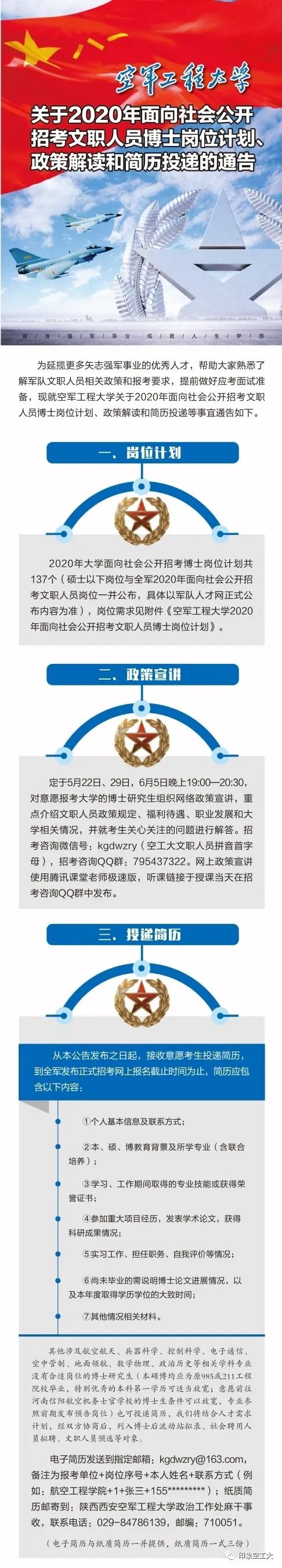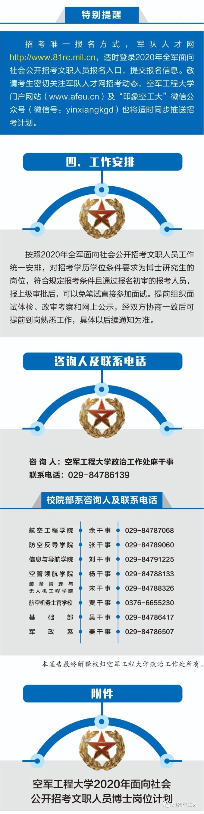 空军工程大学关于2020年面向社会公开招考文职人员博士岗位计划、政策解读和简历投递的通告