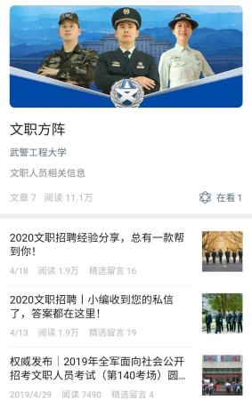 招考唯一报名方式:军队人才网(http://81rc.81.cn/)适时登录2020年全军面向社会公开招考文职人员报名入口,提交报名信息。敬请考生密切关注军队人才网招考动态和武警工程大学官方微信公众号后续通知。