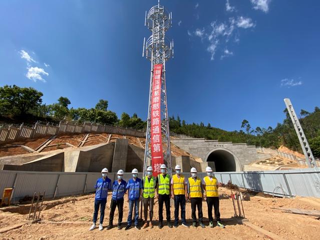 5月7日,中国通号上海工程局承建的玉磨铁路顺利完成第一座通信铁塔组立,标志着玉磨铁路通信铁塔施工进入全面施工阶段。(莫飞龙)