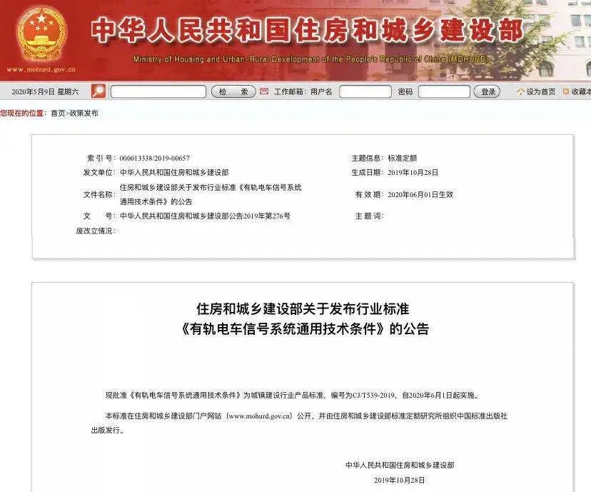 近日,由通号万全公司主编的《有轨电车信号系统通用技术条件》(编号为CJ/T539-2019)被中华人民共和国住房和城乡建设部确定为城镇建设行业产品标准,并于2020年6月1日起实施。(宁博)