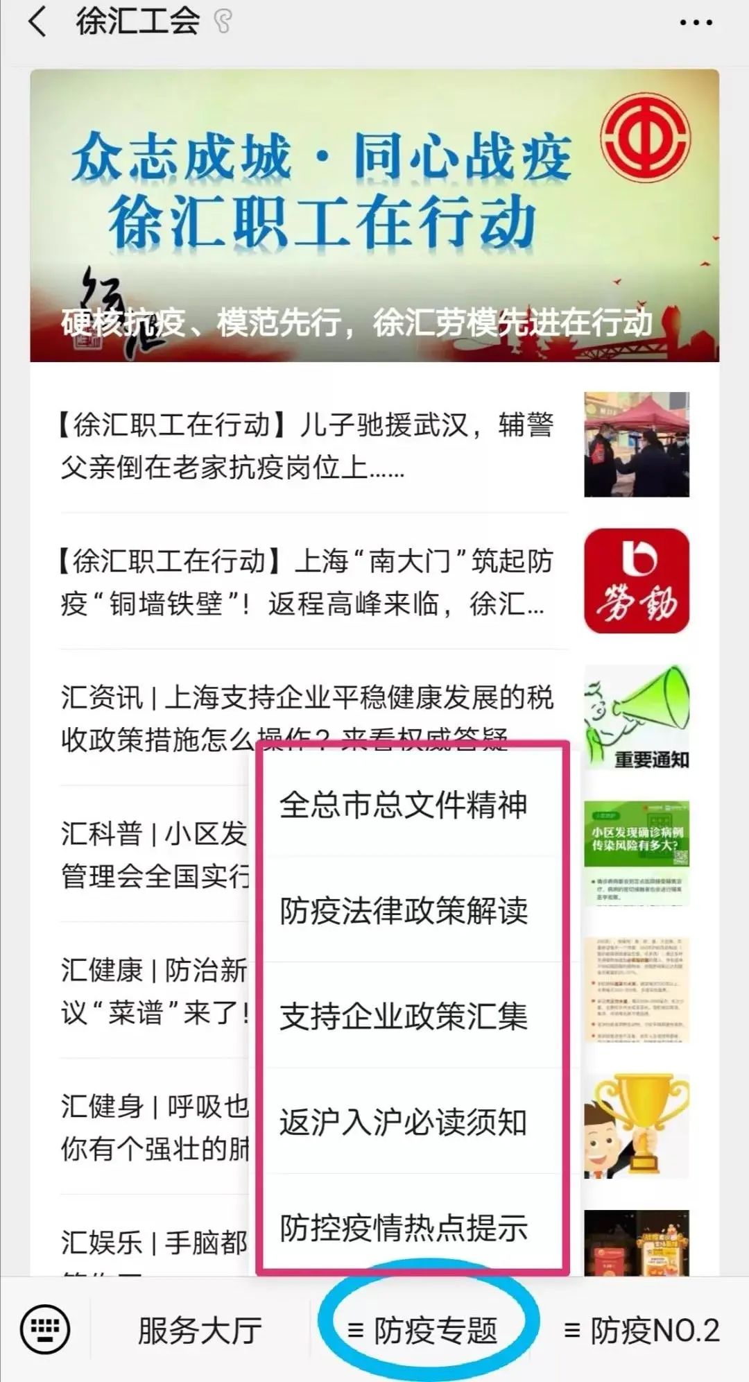 在防疫抗疫初期,徐汇工会在微信公众号上推出了简易版的“抗疫专题”,并迅速升级到了“抗疫专题2.0”,并推出了诸如“最美防疫者”线上系列赛、线上古诗词大比拼、线上宅家健身系列等诸多线上活动项目。红五月,徐汇工会更是开足马力,继推出“徐汇工会服务地图”、举办首期线上直播式的工会讲堂之外,全力推出了“徐汇工会”微信公众号服务功能3.0版本,用“一键式使用、一站式服务”的新尝试为网上工会建设赋能。