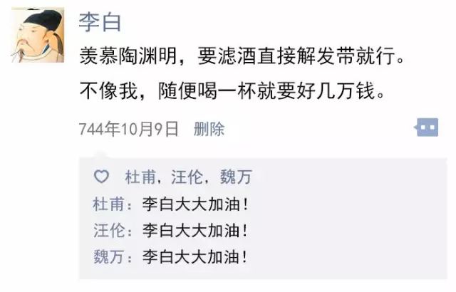 李白爱喝酒是人尽皆知,得意时喝酒、失意也喝酒,一个人喝,聚会也喝,甚至传闻最后也是因为喝酒而亡。。