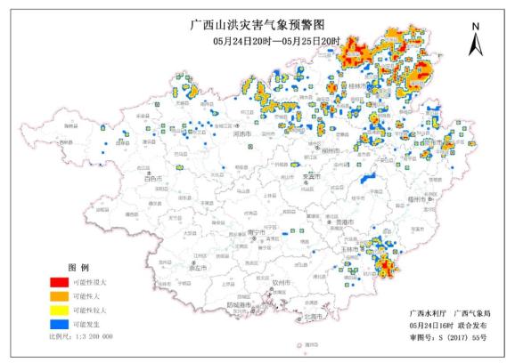 广西水利厅和广西气象局联合发布山洪灾害气象预警: