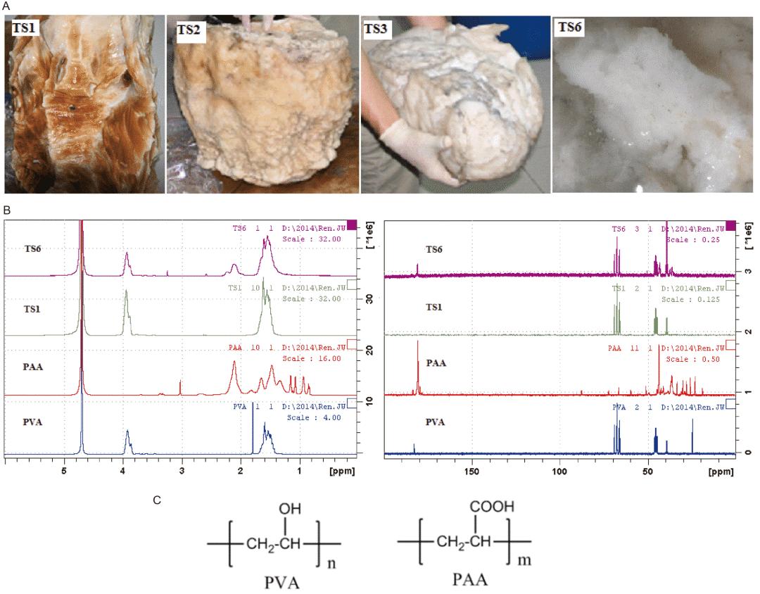 有科研人员还利用冷冻后的聚乙烯醇溶液脱模制作出了人造“太岁”,质地、形态和核磁共振氢谱也与此前研究报道的“太岁”样品相差无几。