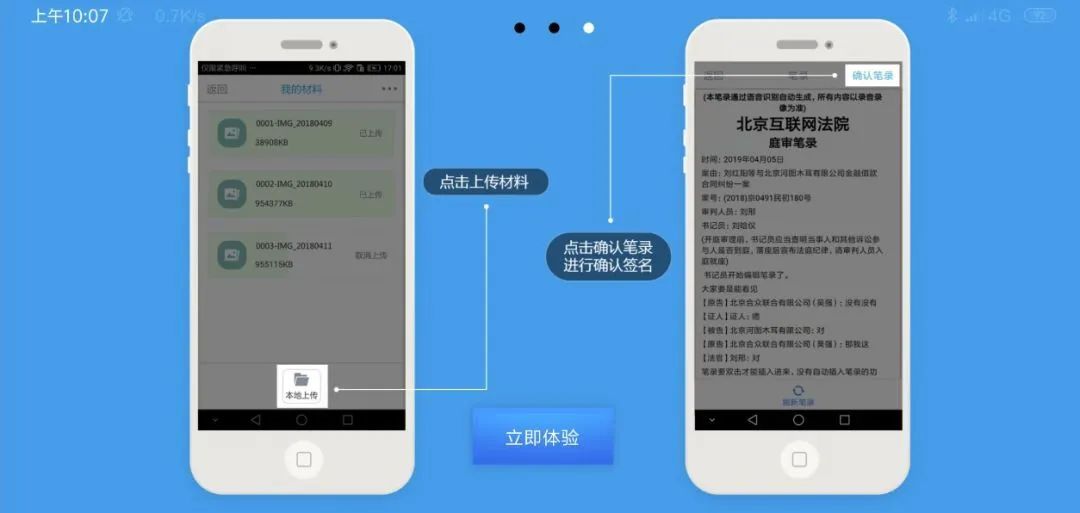 庭审过程中你可以实时查看庭审笔录,法官在庭审结束后,发起签名,当事人可点击弹出的二维码,通过手机扫描完成在线签名。