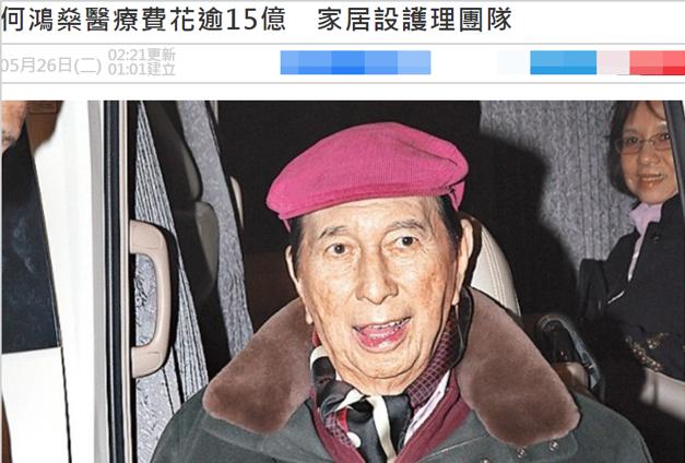 何鸿燊住院后同时邀请多位顶级医生给他做诊断,入住的高级病房中配备有7人以上的高级护理团队,团队24小时贴身照顾何鸿燊健康,而护理团队需要5年以上的护理资质。护理中所配备的相关护理医疗设备就花费至少2000万港元(折合1840万人民币)。