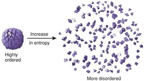 物理学家总结得出,小到房间大如宇宙,如果没有外界向其中输入能量,那么它们作为没有外界干涉的孤立系统,会从有序趋向于混乱,直到达到最混乱的平衡状态。熵代表了这个系统的混乱程度(无序程度)——系统越有序,熵值就越小;系统越无序,熵值就越大。当整个系统退化得趋于稳定,在达到最大熵时“灭亡”,这就是熵增定律。