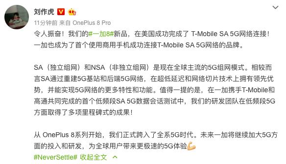 与此同时,为了尽快给全球用户一个真正完整的5G体验,一加也一直在进行SA的技术研发。