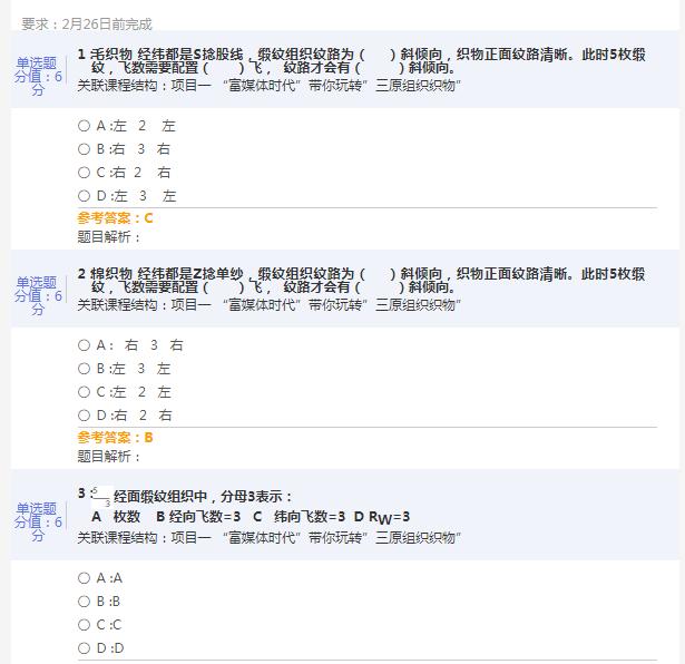 课后布置缎纹组织作业,充分利用线上资源独特的优势,巩固知识,强化练习,查漏补缺,达到熟练、精通的目的(图课后习题强化训练)。