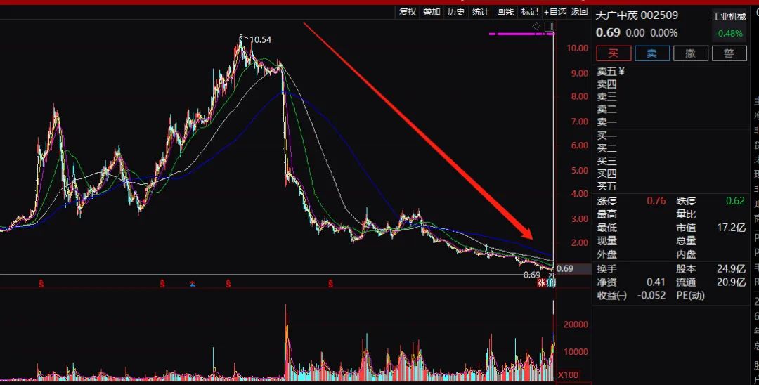 天广中茂,2010年11月23日上市,当年被称为“消防第一股”,2015年并购中茂园林、中茂生物股价暴涨,却也埋下祸根,违规担保、债务违约、商誉炸雷、资产减值、业绩巨亏接踵而至,直落到今日退市地步。