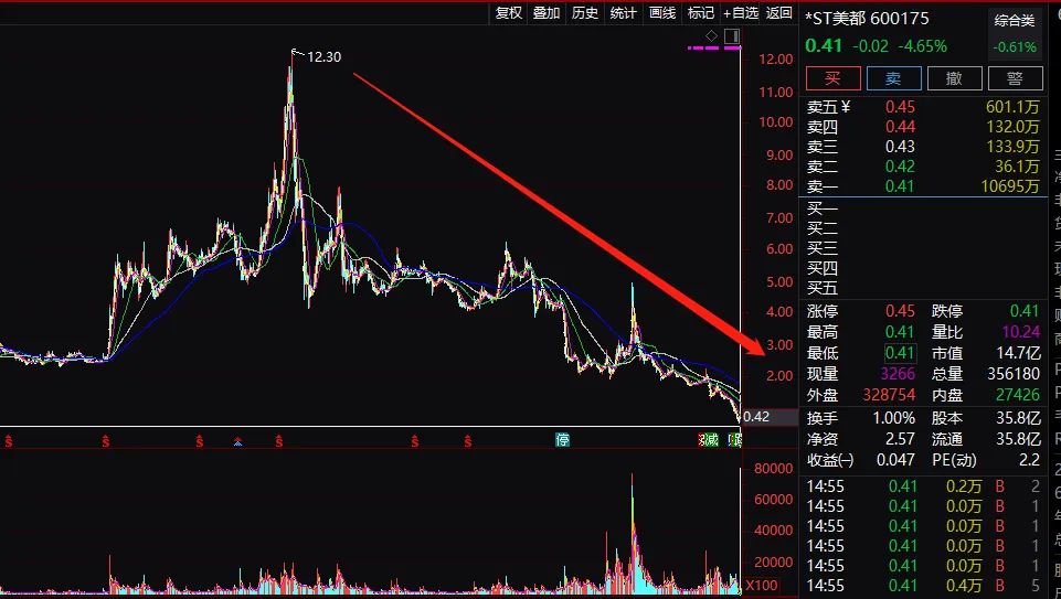 虽然今年一季度盈利1.67亿元,但仍挡不住*ST美都股价低迷,触发面值退市。过去的2018年、2019年,*ST美都分别巨亏10.96亿元、8.31亿元,两年合计亏去19.27亿元。