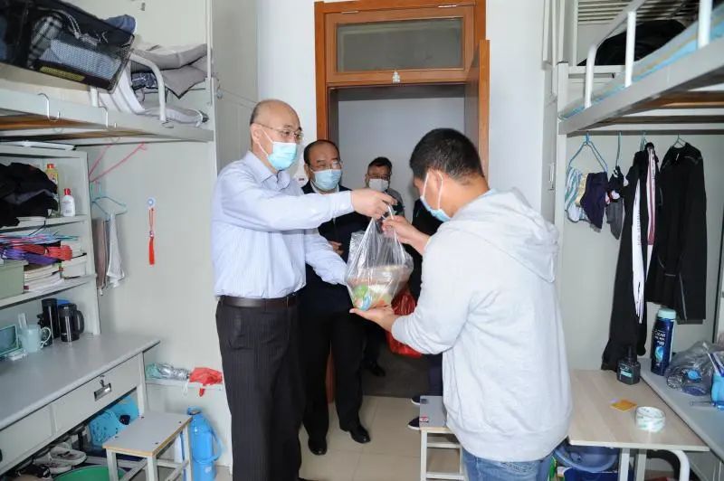 中午12:00左右和下午5:30左右,学生就能吃上学校领导送到宿舍的香喷喷的饭菜。学校领导在送餐的同时向同学们送去问候和祝福,提醒学生放心用餐、调整心态,尽快适应返校后的生活。