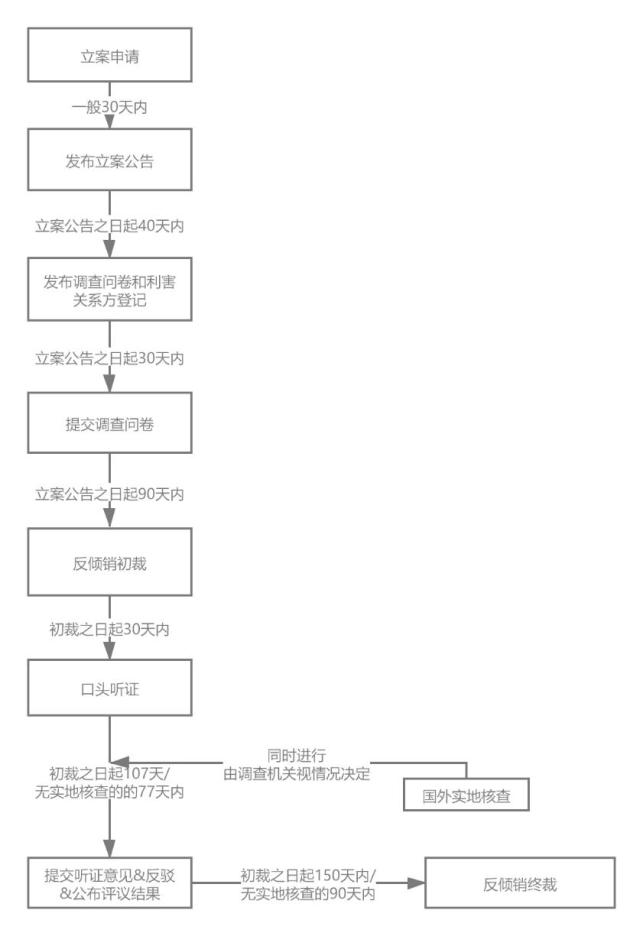 须注意的是,自2018年1月1日起,印度商工部整体缩短了反倾销调查每一阶段的时限。例如,原初裁时间系立案公告之日起的150天,现调整为了90天。根据2018年印度商工部的贸易救济操作手册,具体调查流程是如下图所示: