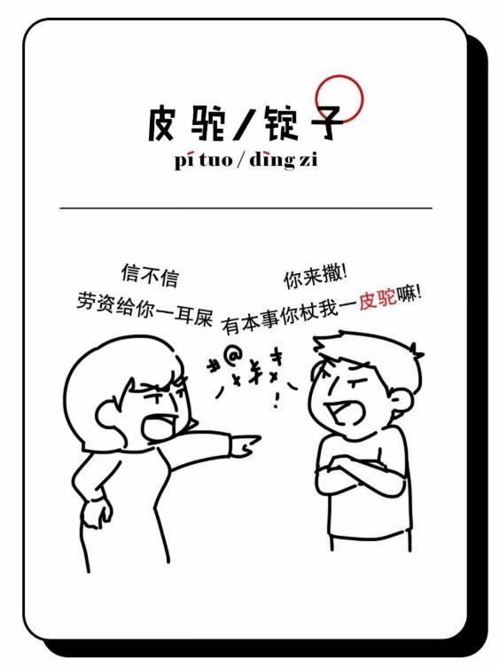 同期:宜宾话里跟打架有关的词组很多,比如“can3你娃儿一耳屎”,挖你龟儿一壳锤儿,抖你娃儿一窝心脚,掌你娃儿一皮驼,甩你娃儿一锭子。你不要小看“can3你娃儿”的“娃儿”这个词,这其实是精华,起到加强语气的作用。如果不加这个“你娃儿”,总觉得说起来不过瘾,不足以表达自己的情绪。当然,“can3你娃儿一耳屎”这个数量词“一”,你愿意换成“两”或者“几”或者更多,也是可以的。