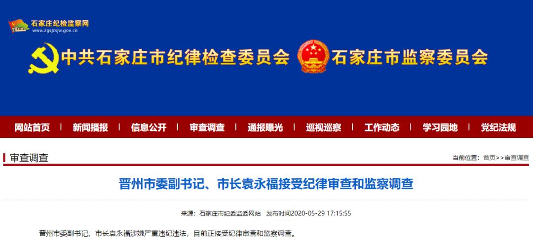 原标题:《最新公布!晋州市长袁永福被查》