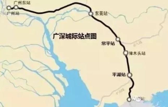 根据此前规划,广深第二高铁的线路为:深圳宝安机场→东莞→广州黄埔站→白云机场→广州北站,据说还有一条支线,那就是从黄埔站出发北上连接知识城站,而知识城站也是广河高铁的一个站点。