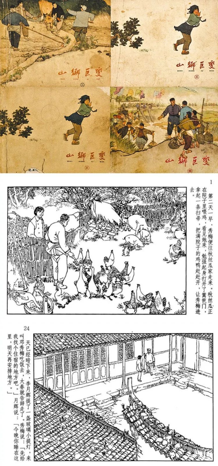 说到这一时期的代表人物,不得不提贺友直先生。他是中国连环史上里程碑式的人物,也是当年“一百单八将”之一。2009年,贺老获得新中国成立以来首次评选颁发的“中国美术奖·终身成就奖”。他从出版社成立起一直在上海人民美术出版社工作,画了一辈子的连环画。代表作有《山乡巨变》《朝阳沟》《白光》《十五贯》等。他的独到之处在于能够根据主题的需要,在画面里制造情节而仔细品读贺老的连环画,你会发觉其中的生活细节贴切真实,妙趣横生。当年,为创作《山乡巨变》,贺老更是两下湖南农村去体验生活。贺老曾经说过,他从不介意别人说连环画是“小人书”。而有评论家则指出“连环画在贺友直之前是小人书,在贺友直之后就是艺术瑰宝。”