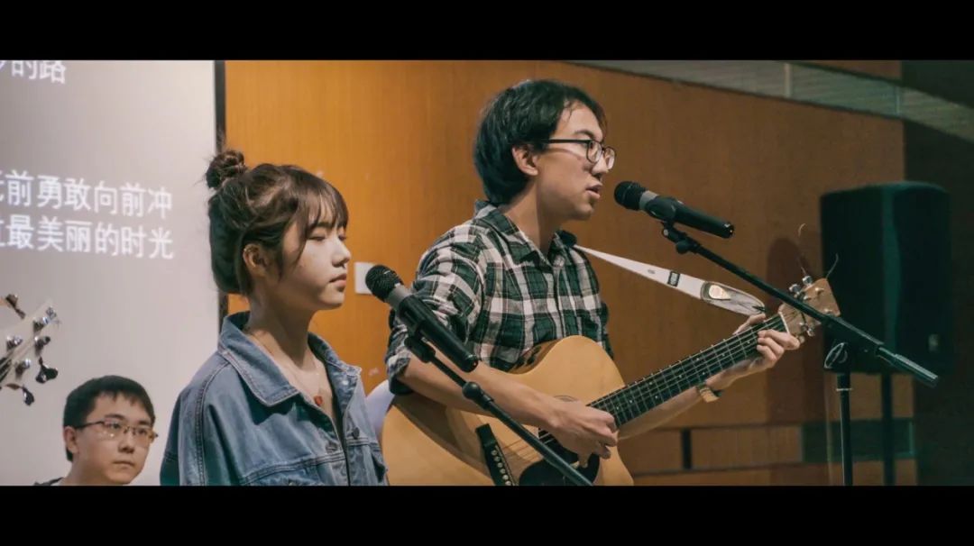 沐安上台演出的镜头,取自北大舞团三十周年专场的实地现场;为了拍摄小雪和向海参加十佳歌手大赛的场景,他们干脆真的报了一次“十佳”;阿哲到山区支教的片段,取材于汪谷大二暑假参加“北台云学生社会服务计划”的实践经历......在这样的情况下,对场面进行调度或者预设拍摄效果几乎不现实,拍摄时只能在不确定的情况中抓取素材。比起通常电影拍摄里无限“NG重来”的机会,《时光慢递》包含了太多只有一次的瞬间。