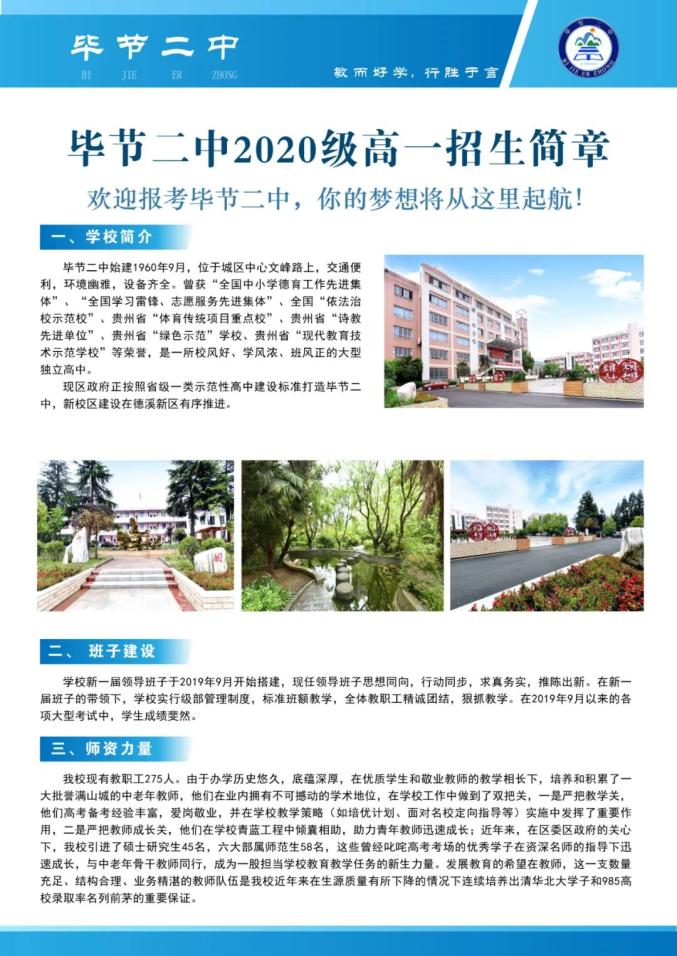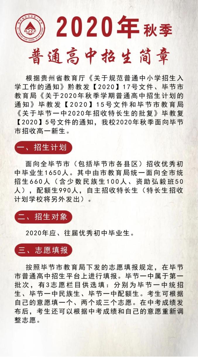 原标题:《毕节城区部分高中学校高一招生简章出炉!》