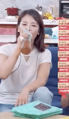 她在直播间,穿着简单的白T恤蹲在地上大喊着好热,一边扇风,一边大口喝水。