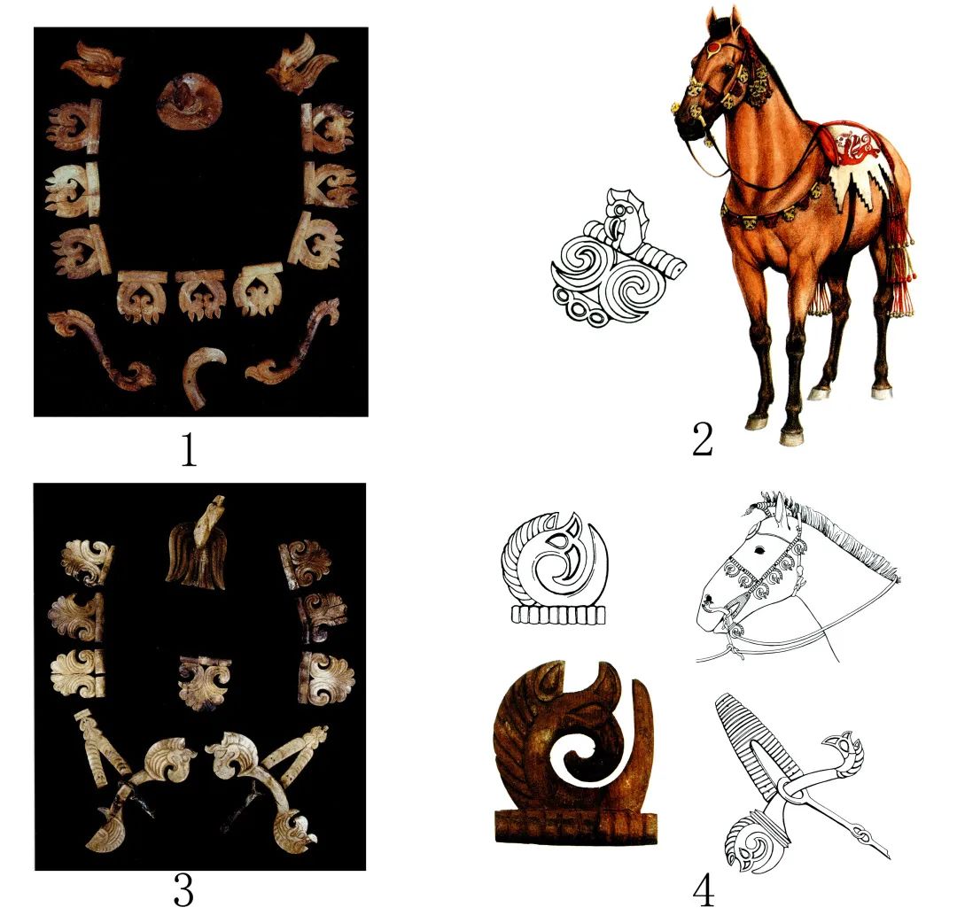中国北方地区早期阶段的动物纹装饰主要出现在工具武器和马具等实用器上,使用的主体人群是武士阶层。在武器和工具上装饰这些动物纹表达了他们对动物能力的崇拜之情,也显示了他们渴望拥有更高级能力的愿望。在工具武器上装饰动物纹更能体现武士的重要社会地位,随葬品丰富的墓葬一般都为武士墓葬,这也表明武士是当时草原社会的主要贵族人群。